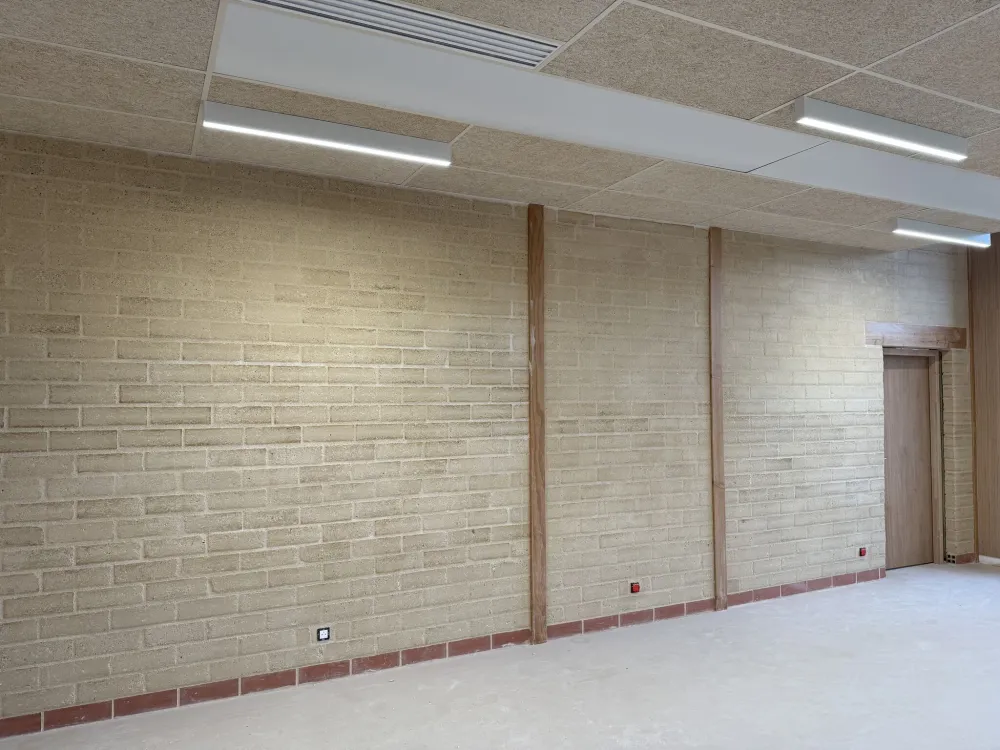 Ce projet s’inscrit dans une démarche de construction durable et bas carbone, en valorisant un matériau biosourcé, local et recyclable. La terre crue contribue activement au confort thermique, à la régulation de l’humidité intérieure et à la qualité de l’air, des enjeux essentiels dans les bâtiments dédiés à l’enseignement et à la santé.