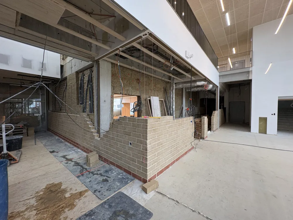 Fin de chantier de maçonnerie en briques de terre crue, avec la pose de 838 m² de briques au sein de l’IFSI.